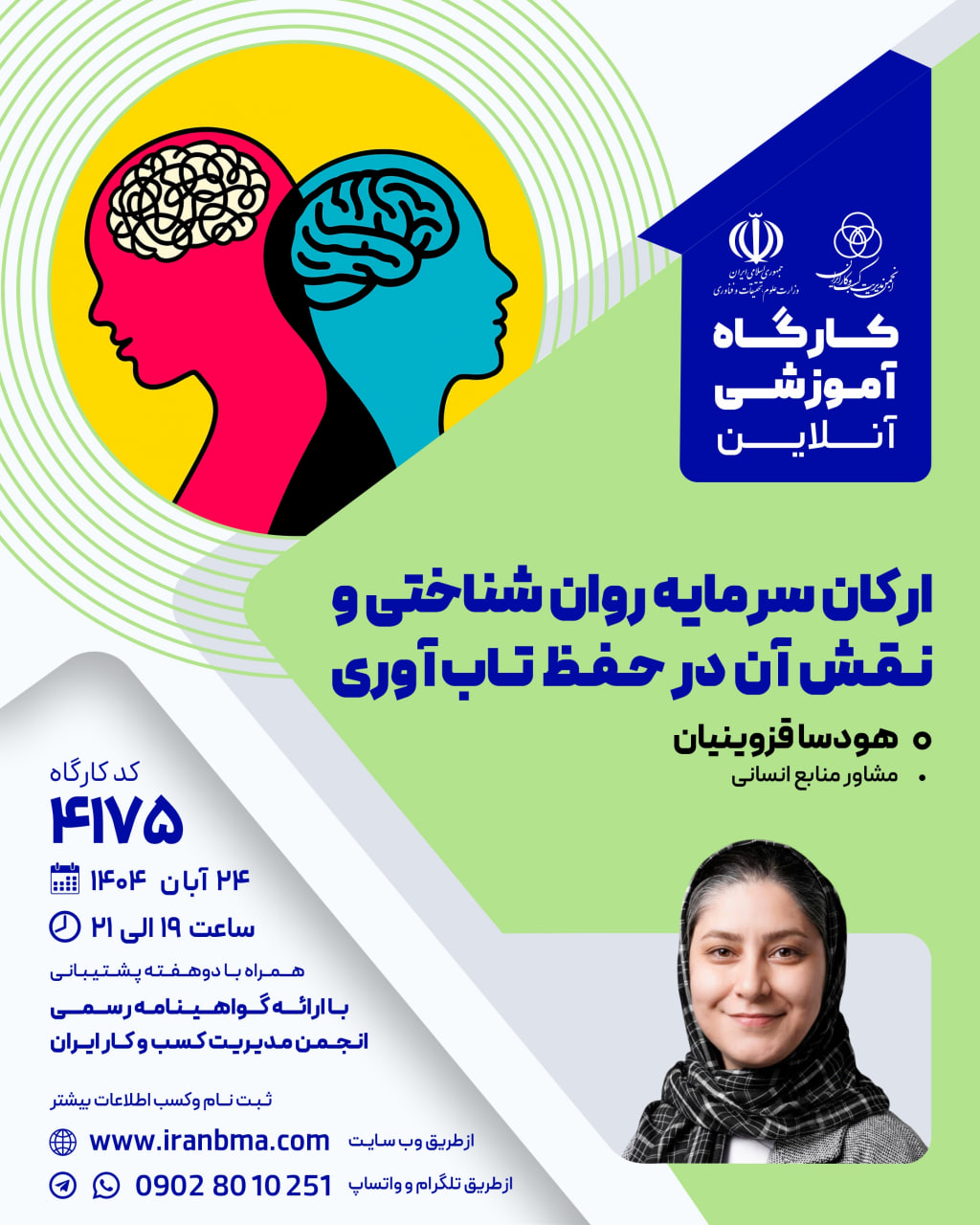 ● کارگاه آموزشی “ارکان سرمایه روان شناختی و نقش آن در حفظ تابآوری (۴۱۷۵)”