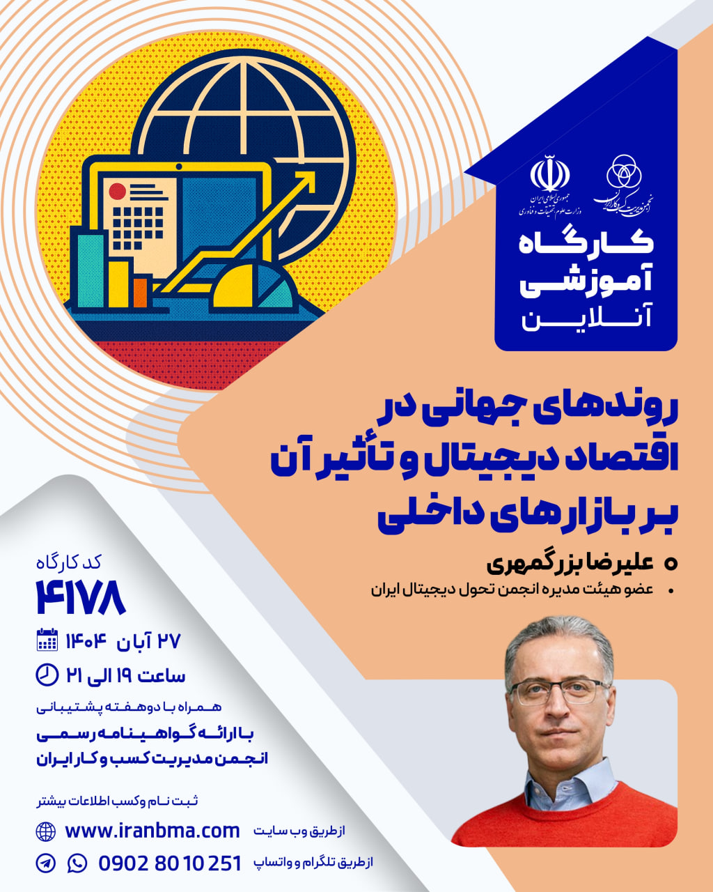 ● کارگاه آموزشی “روندهای جهانی در اقتصاد دیجیتال و تأثیر آن بر بازارهای داخلی (۴۱۷۸)”